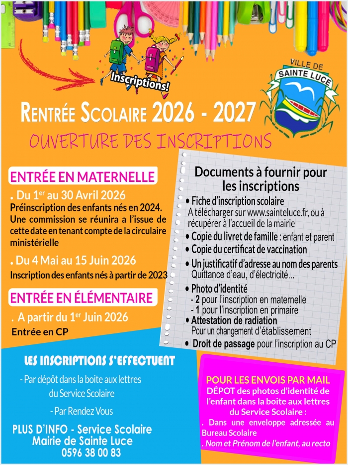 Ouverture des inscriptions scolaires 2026 – 2027.